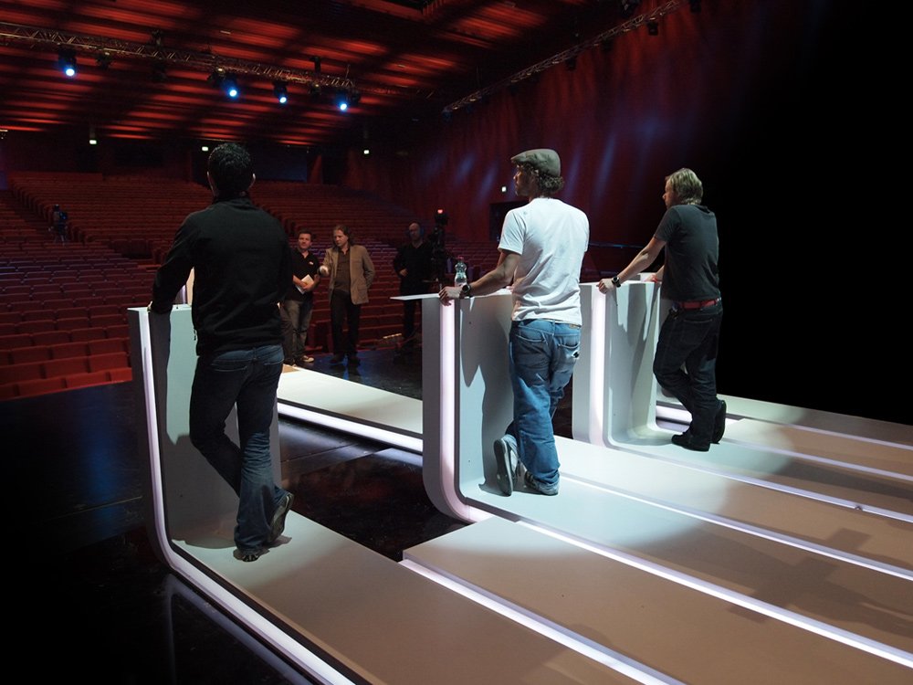 Für die Wiener Landtagswahl 2010 entwarfen Peter Mitterer Architekten für den Sender ATV ein Wahlstudio das in der Wiener Stadthalle vor großem Publikum präsentiert wurde. Das Design nimmt die in der Wahlberichterstattung verwendeten Balkendiagramme als Ausgangspunkt und verwandelt sie zu Pulten für die KandidatInnen. Die 180 Grad bespielbare Projektionswand bettet die diskutierten Themen visuell ein. Das Studio und der mobile Tisch für die ModeratorInnen wurden in den Werkstätten von Winter Artservice umgesetzt.