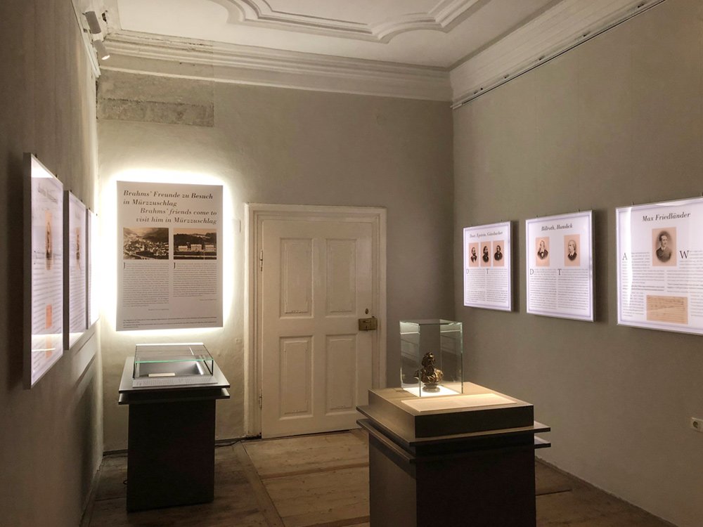 Die neue Ausstellung „Einsam & Gesellig – Brahms´ Schaffensprozess und Besuche seiner Freunde“ wurde von Prof. Mag. Hans Kudlich gestaltet und in der Brahms-Wohnung in Mürzzuschlag umgesetzt. Neben einem Bösendorf-Konzertflügel sind Exponate zum Schaffensprozess von Brahms zu sehen, wie etwa sein Tintenzeug, der Papierkorb aus der Wiener Wohnung sowie seltene Entwürfe, Skizzen und Korrekturen. Brahms verbrachte die Sommermonate 1884 und 1885 in Mürzzuschlag und komponierte dort seine IV. Symphonie sowie 30 Lieder und Chorwerke.Die Vitrinen zur Ausstellung wurden in den Werkstätten von Winter Artservice umgesetzt.