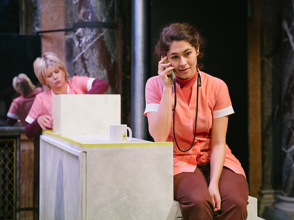 Mit der Theateradaption von David Wnendts vielfach ausgezeichneten Film „Kriegerin“ zieht ein völlig neues Format in die kleinste Spielstätte des Burgtheaters. Insbesondere die Zusammenarbeit zwischen Jugendlichen und Ensemblemitgliedern zeichnet diese Inszenierung aus. Das wandelbare Bühnenbild von Anneliese Neudecker nützt den begrenzten Raum des Vestibüls hervorragend, so werden aus den weißen Treppen auch andere Objekte wie ein Auto oder ein Imbiss.