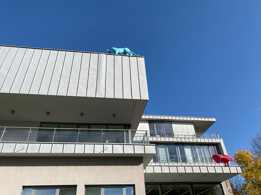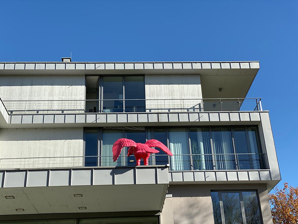 Auf den Dächern des Landesverwaltungsgerichts in Salzburg sind neuerdings eine Löwin und ein Adler zu finden. Sie wurden dort von Michael Kienzer platziert und nehmen Bezug auf die Wappentiere des Landes Salzburg und des Staates Österreich. Ungewöhnlich erscheint die Ausrichtung nach innen. Der Adler ist im Begriff sich einen Platz zu suchen und die Löwin streift entspannt an der Dachkante entlang. Anders als die typischen Drohgebärden der traditionellen Darstellungen, wirken diese Tiere friedlich und mit sich selbst beschäftigt. Scheinbar uninteressiert an den Belangen der BesucherInnen. Entstanden sind die Skulpturen von Michael Kienzer im 3D Atelier von Winter Artservice.