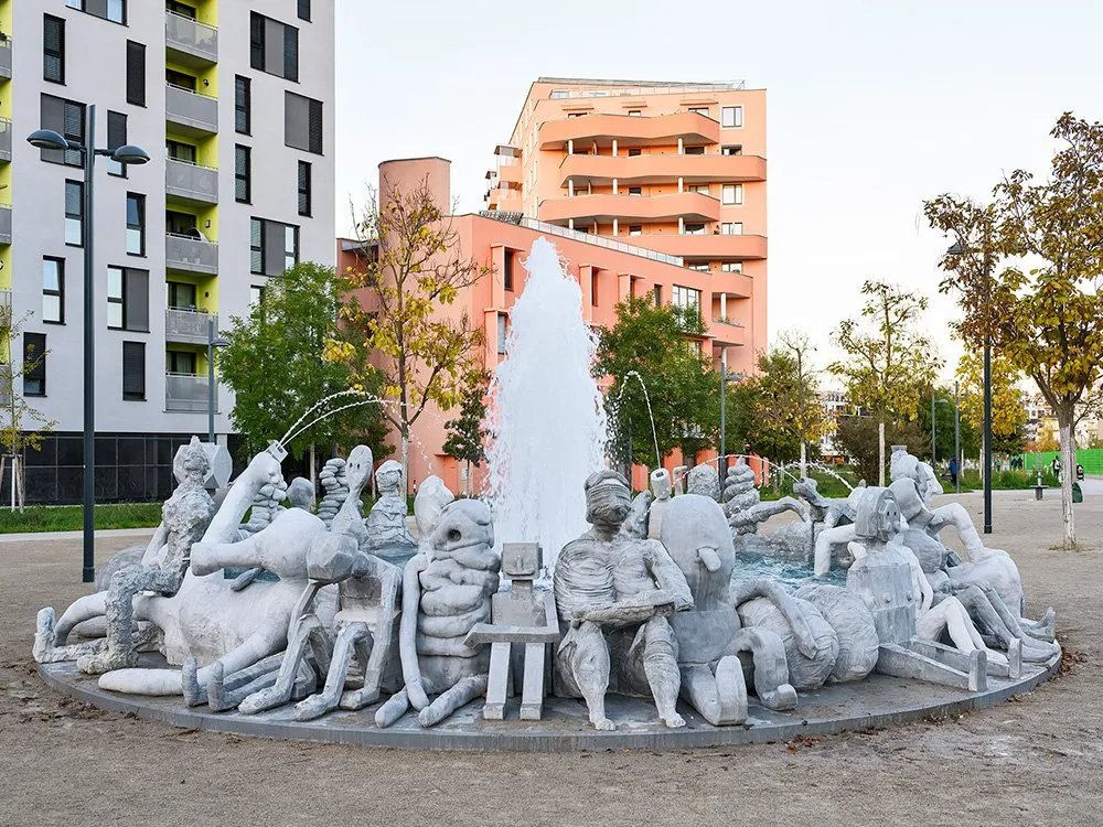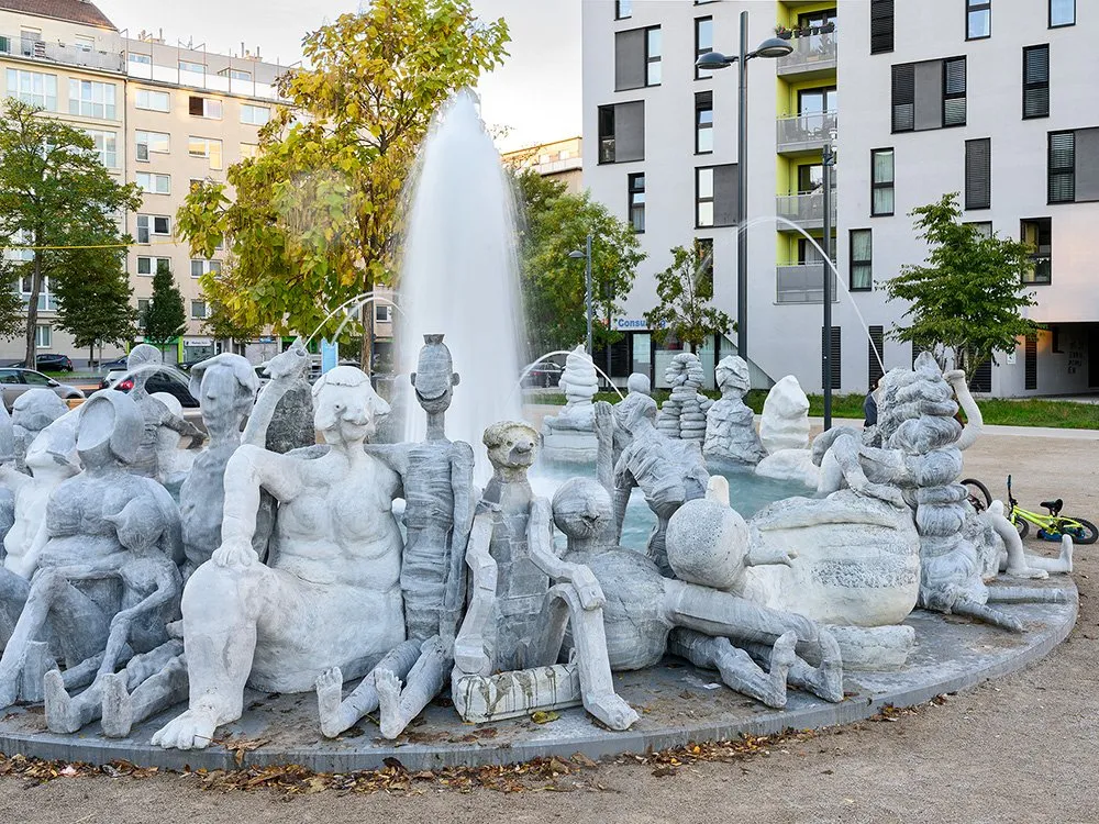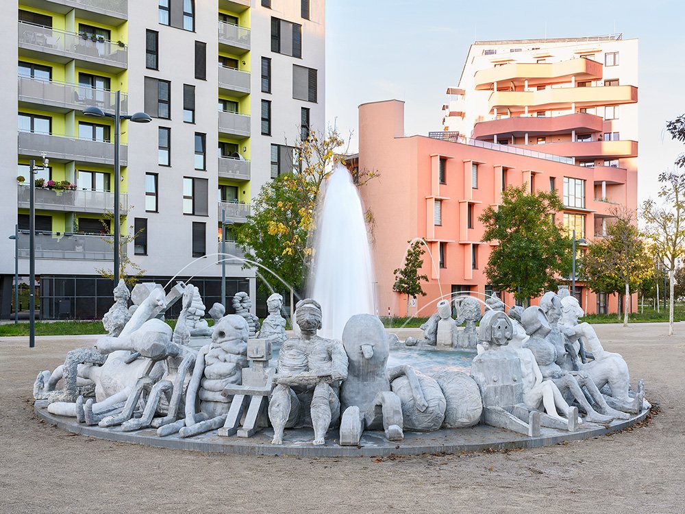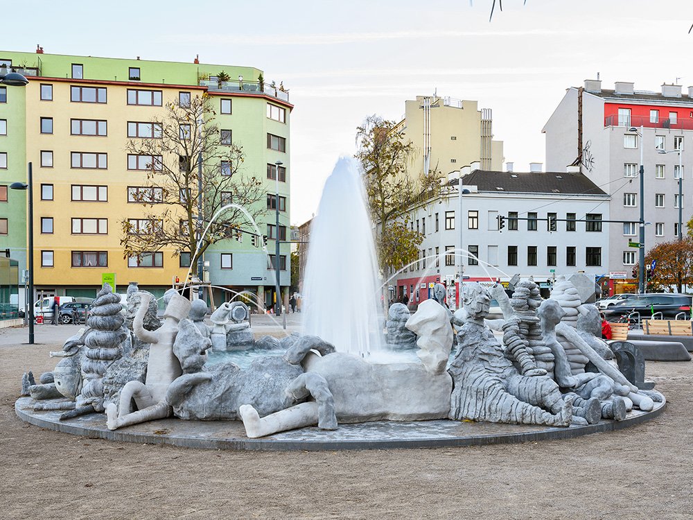 Zum 150-jährigen Jubiläum der ersten Wiener Hochquellleitung gestaltete Gelitin für Wiener Wasser einen Springbrunnen. „WirWasser“ steht für die Verantwortung, die die Gesellschaft für das Wasser trägt. Die 33 Figuren sitzen eng aneinandergeschmiegt um einen Kreis und bilden so das Brunnenbecken. Jede Figur ist einzigartig und zeigt die Vielfalt und Diversität der Menschen in einer Stadt. Der Brunnen vermittelt das Wir-Gefühl und weist uns darauf hin, dass wir nur gemeinsam unser Wasser schützen können. Die Figuren wurden aus Beton gegossen, Winter Artservice hat einzelne Gussformen für Gelitin 3D-modeliert und CNC-gefräst.